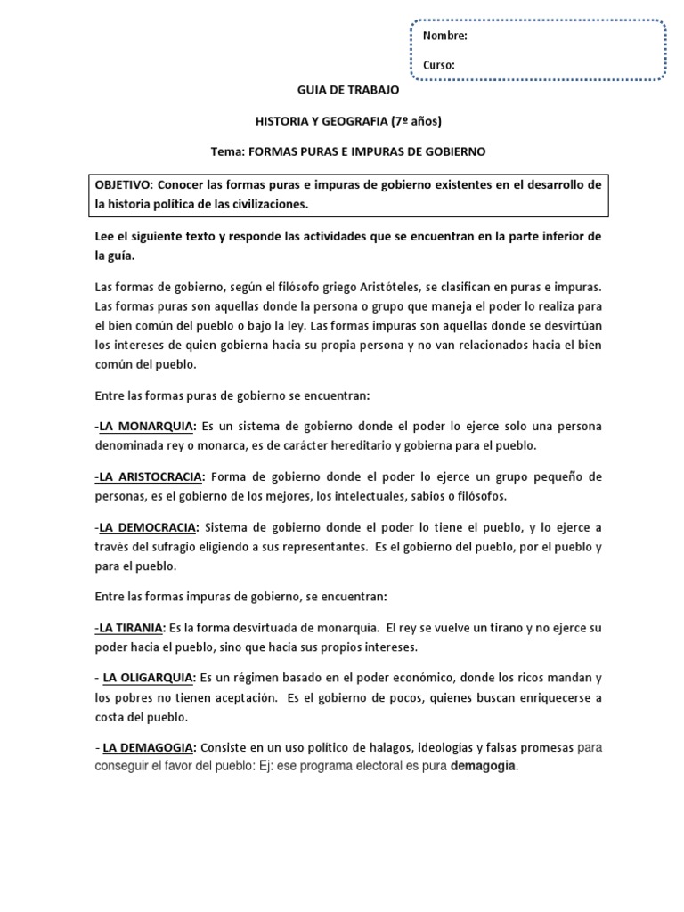 Guia De Trabajo Formas De Gobierno 7 Formas De Gobierno Monarquia