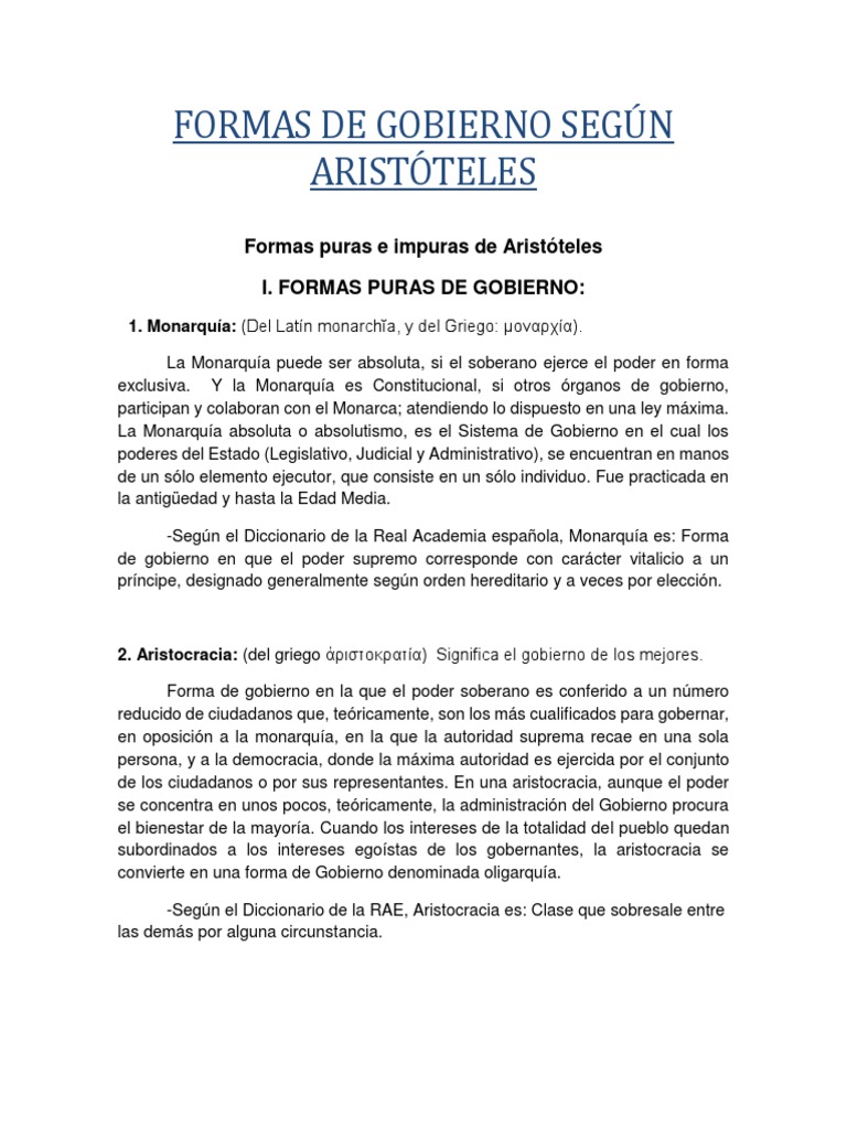 Formas De Gobierno Puras E Impuras Mario Bello By Mario Bello
