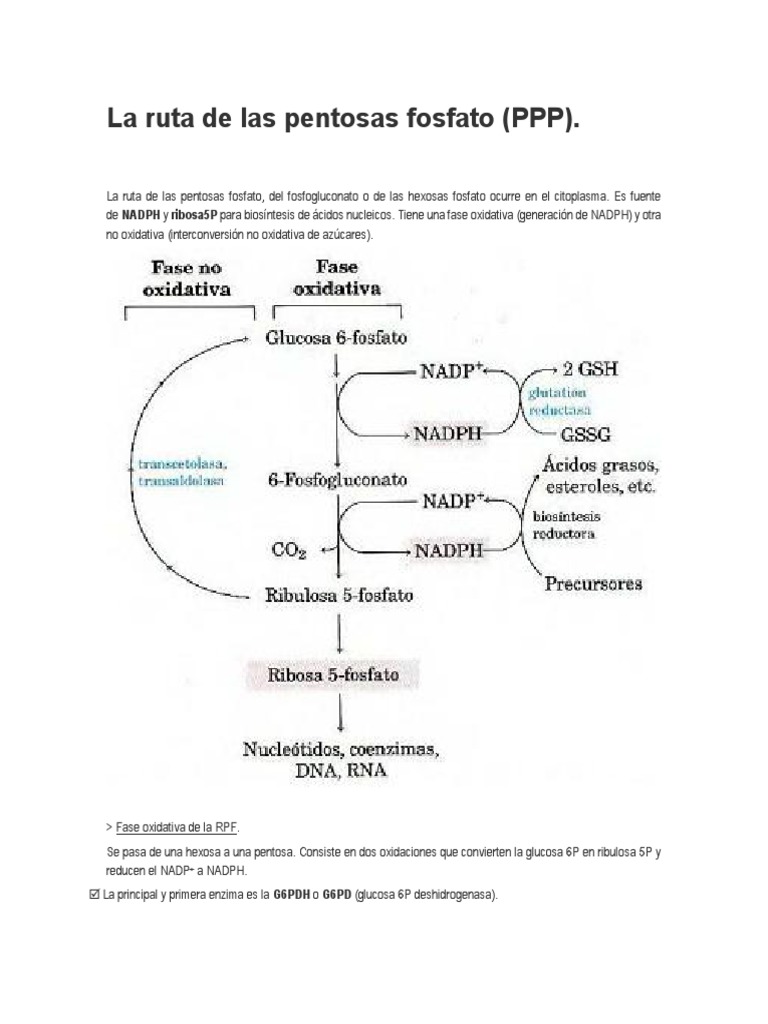 Ruta metabólica relacionada con la glucolisis. A medida que el NADPH sea consumido por procesos biosinteticos el aumento en los niveles de NADP estimula la ruta de las. Videoclase en la que se explica la RUTA DE LAS PENTOSAS FOSFATO en un nivel de 1º de estudios universitarios del ámbito bio-médicoMás materiales en wwwprof.