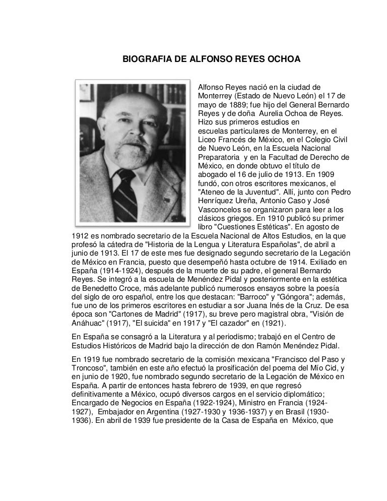 Historia Y Biografia De Alfonso Reyes Ochoa